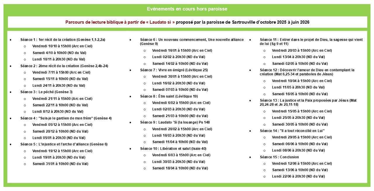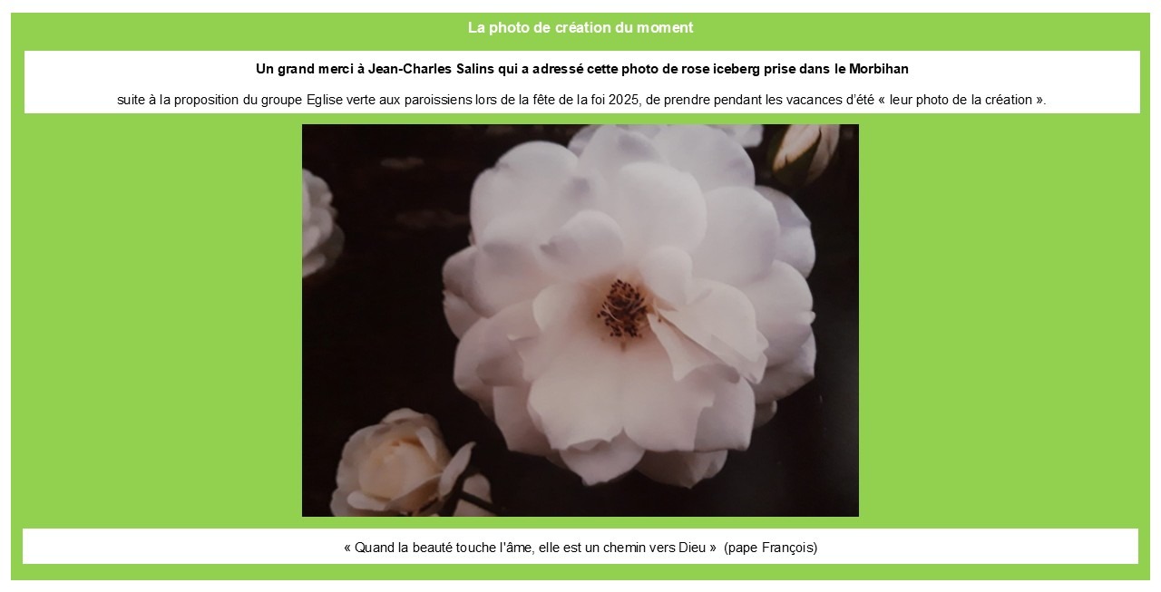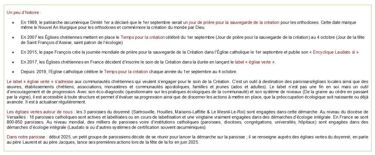 Les mouvements de la paroisse et la paroisse sont déjà impliqués pour le soin de la création ;